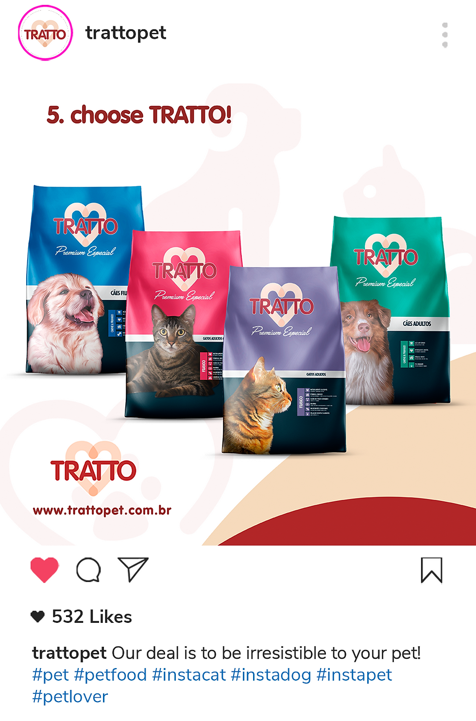 TRATTO is everything your best friend needs. TRATTO is a pet food balanced with all the vitamins and nutrients that your pet needs to grow strong and energetic.
